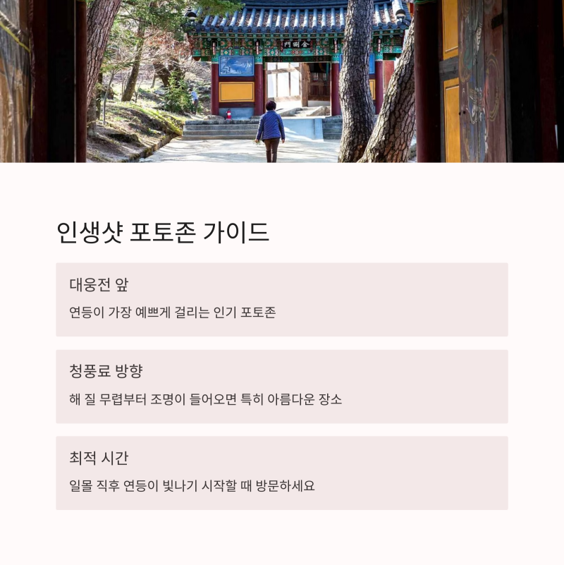 사찰 산책 코스 추천: 대웅전부터 산중다원까지