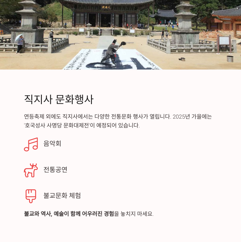 이런 행사는 불교와 역사, 예술이 함께 어우러진 경험을 선사하며