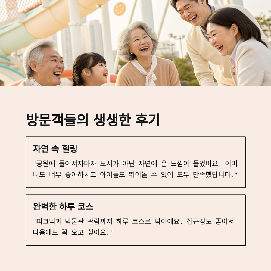 특히 휠체어와 유모차를 고려한 무장애 친화 설계는 모든 연령층이 함께하는 나들이 장소로서의 가치를 높이고 있습니다.