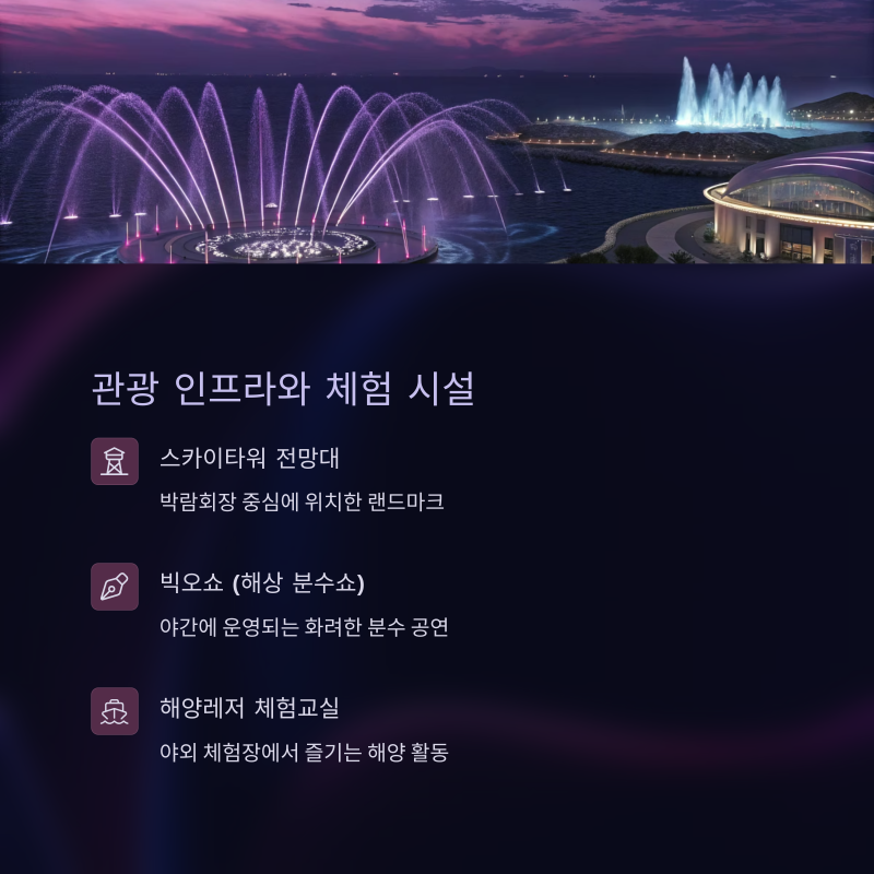 2024~2025년 여수 박람회는 단순한 전시 공간을 넘어 국제행사 유치의 중심지이자 남해안 관광 거점으로 자리 잡고 있습니다