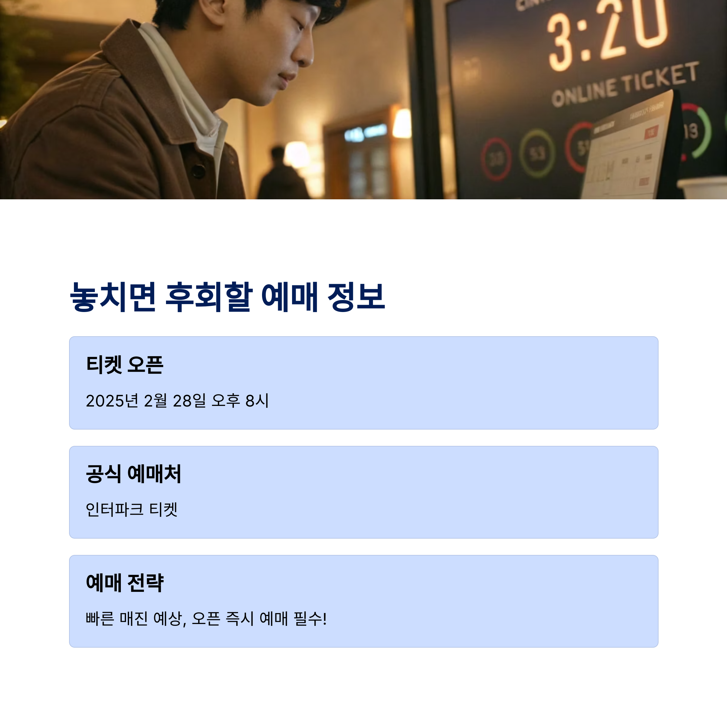 "예매 전쟁"을 대비한 사전 준비가 매우 중요합니다