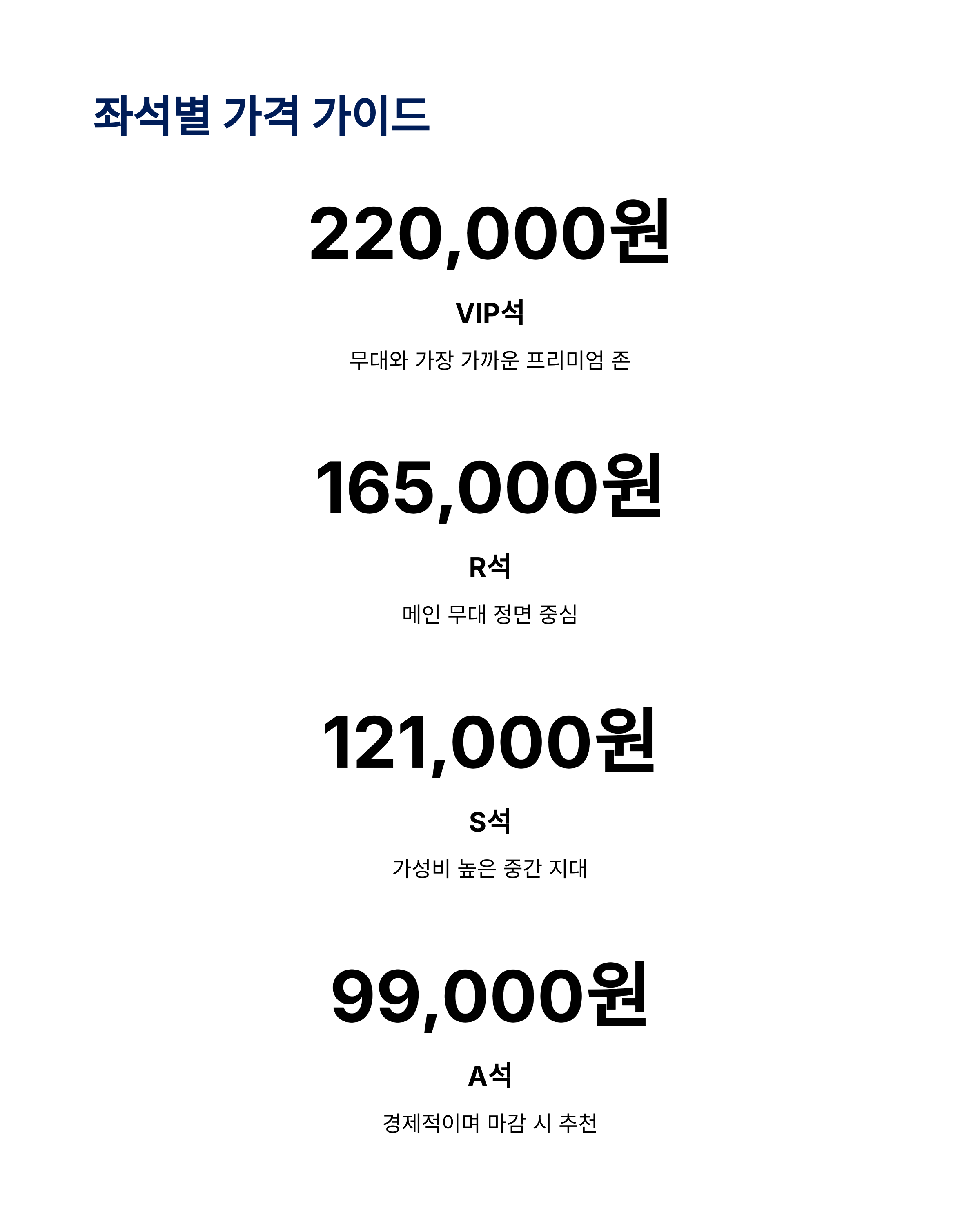 중앙 정면 좌석으로 음향 밸런스가 뛰어납니다 - R석: 220,000원