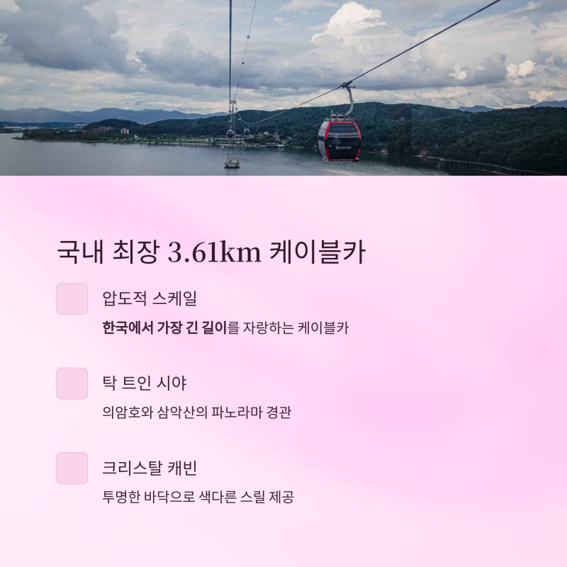 국내 최장, 3.61km 삼악산 호수케이블카의 압도적 스케일