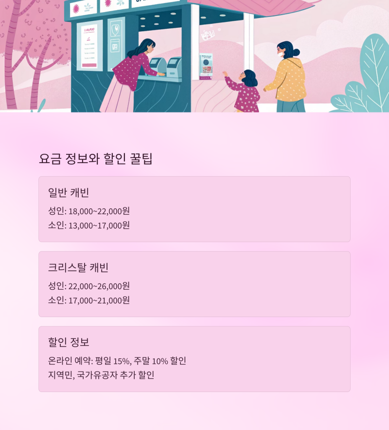 | 일반 캐빈 | 18,000~22,000원 | 13,000~17,000원 |