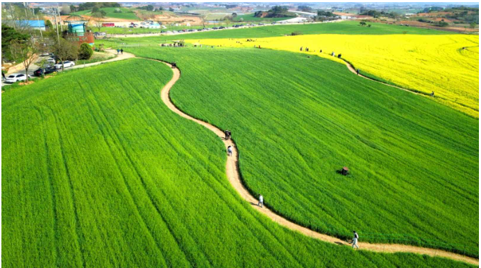청보리와 유채꽃 사이, 드라마 속 한 장면처럼 걷다