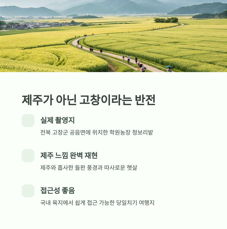 많은 이들이 드라마의 배경을 제주로 착각하지만, 실제 촬영지는 전북 고창군 공음면입니다.