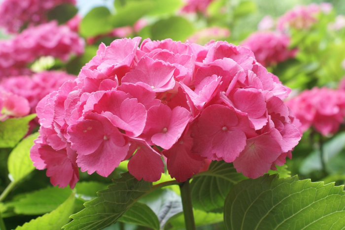 알칼리성 토양에서 자란 분홍빛 수국이 특히 아름다워 사진 촬영 명소로 손꼽히며,