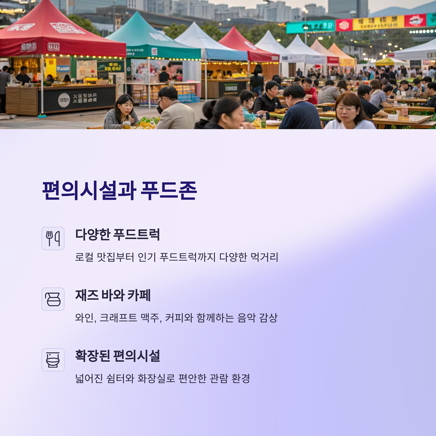 푸드존, 쉼터, 화장실 등 다양한 시설이 보강되어 더 편리한 관람이 가능합니다.