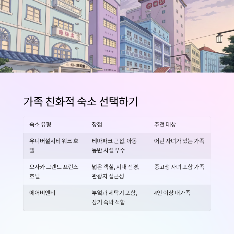 "가족과의 여행은 장소보다 준비가 더 중요하다"는 말처럼,  충분한 준비와 신중한 숙소 선택은 오사카 여행의 질을 좌우합니다.